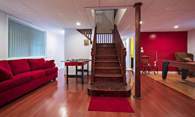 Enjoy our freshly renovated home which offers 4 bedrooms and 3 full bathrooms. The house can comfortably sleep up to 8 guests. Rejoice into the feeling of an old-fashioned setting with the entertainment of modern day technology. This includes 2 smart TVs, one which is equipped with a PlayStation 4. Indulge yourself into a variety of competitive miniature table games such as ping pong, billiards, foosball, and air hockey. Or simply, enjoy the relaxing vibes of our cozy balcony as the sun sets 🌅. Warm yourself up during the day time by playing volleyball outside, or at night time simply just toast yourself up by sitting around the fire pit with those that you love. The homely feel of this place will make you feel like you're relaxing at home and on vacation at the same time! If you want some active fun competitive leisure time, we have a PlayStation 4 with a variety of games included. Please keep in mind that the table games such as billiards, ping pong, foosball, and air hockey are NOT full sized and are miniature games!