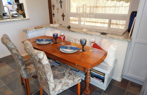 Come enjoy our Slice of Heaven Cabin less than 2 miles from downtown Julian tucked away at end of quiet private road. This 1945 cabin comes with a vintage brick fireplace, upgraded to gas for easy operation same for the patio BBQ for a quick setting and cooking!