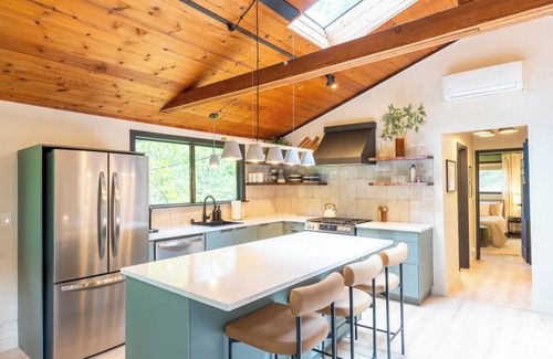The fully stocked kitchen has everything you need to make a home-cooked meal and all the barware for that perfect cocktail. We've also got you covered with Nespresso Vertuo coffee, a selection of gourmet teas, and a French press. Enjoy your meals at the dining table looking out to the forest, or outside dining under the trees.