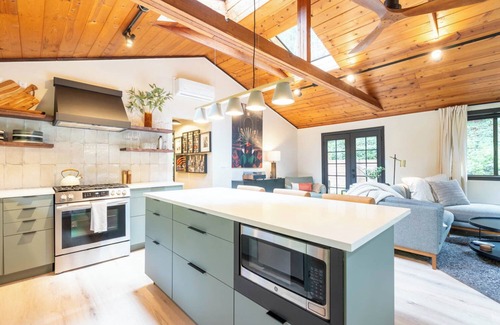 If staying in is your vibe, there are blackout shades in both bedrooms so you can sleep in as long as you want on the comfortable memory foam mattresses. Once you're ready to take on the day sink into the sofa, spin a record and light a fire.