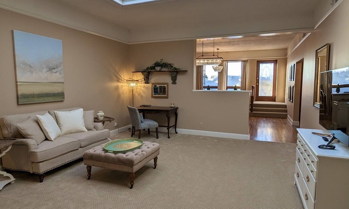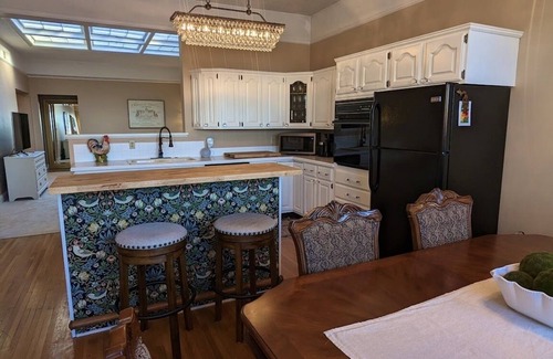 Upon entering, you will feel as if you have been transported to New York or Paris! This tranquil, unique 3 bedroom, 2 bathroom, featuring an open floor plan with 10’ ceilings, skylights and hot tub with spa room, will provide a relaxing retreat and create a most memorable stay.