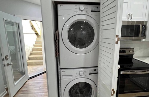 Brand new, newly renovated with all the modern conveniences & finishes. The home has been completely gutted and rebuilt featuring stylish finishes; kitchen with new polished stainless-steel appliances, LED lighting, comfortable open concept living space perfect for unwinding after a long day in the bustling city. The grocery store is close by making it easy to dine in at the stylish mid-century dining table that seats 4 guests. Relax in the living area equipped with a smart TV (Netflix, HBO, Amazon, Hulu - your account is needed)