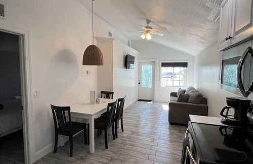 This beautifully renovated cottage accommodates up to six guests, featuring two cozy queen-size beds and a queen-size pullout sofa-bed, making it perfect for families or close friends celebrating together. The cottage includes a fully equipped kitchen with modern amenities, such as quartz countertops and essential cooking utensils, ensuring you can enjoy home-cooked meals during your stay. Relax by the heated pool, unwind in the hammock, or host an intimate outdoor gathering with BBQ grills available on-site. The unit also boasts complimentary Wi-Fi, contactless self-check-in, and convenient laundry facilities.