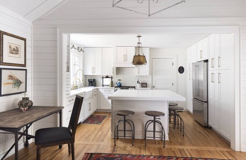 The Layout: With flat and easily accessible entry, guests enter into the enclosed sunporch and dining area for 6-8. Just beyond, spill out onto an open living room with comfy seating for 5, a fully stocked kitchen with an oversized island and 4 additional counter stools. Past the living room, guests will find a cozy queen bedroom with it’s own sizeable bath (tub/shower combo) and an additional large king bedroom with ensuite bath and a stand up shower. Upstairs is a bunkroom for 4 with low ceilings to create a sense of warmth and adventure. It has it’s own private bathroom with a walk in shower. The beautiful deck with it’s classic Adirondack chairs is where you’ll want to spend mornings with coffee or evenings with your favorite beverage. Quiet solitude surrounds you in this lovely wooded setting. Just a couple of miles from town, you get the best of both worlds in this little gem of a house.