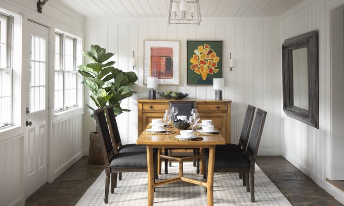The Cabin: No detail was overlooked when designing spaces that are as functional as they are beautiful. Rural Felicity gives a cabin in the woods vibe. The property features all wood walls, hardwood floors, an enclosed stone terrace with dining room and an additional seating area, and a bunk area for the littles. The living room also features a gas log fireplace.