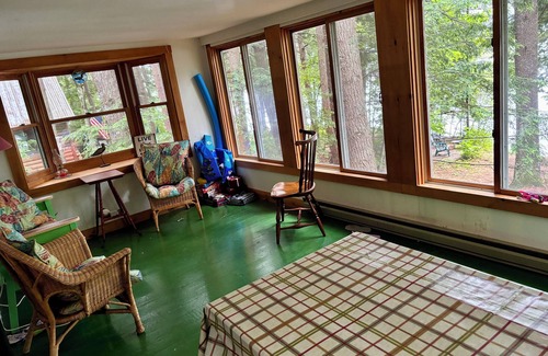 This quintessential Maine cottage is nestled among tall pines on the shore of desirable Keoka Lake, which, along with hikeable Mount Tire’m, was created by glacial activity 10,000 years ago. Keoka is a haven for fishing (brook trout, landlocked salmon, bass), paddling and boating, but it is quiet compared to the bigger lakes. The cabin itself is spacious, with 4 bedrooms (3 queen, 1 full, 2 twin), 2 bathrooms (shower only), full kitchen, living room and enclosed porch facing the water. The master bedroom and common areas are air conditioned, and there is a wood stove for chilly nights. Off the enclosed porch, there is a small deck with a propane grill. There is a waterside “patio” to the left of a gently sloped, private sandy water ingress, and a dock, where you can tie up the house canoe. Swimming it’s great for younger kids. My kids are 6 and 10 and I love that the water is fairly shallow until the end of the dock. For reference, my son is 6 and can stand until the end so I have a good guide of when to tell him to back up. It’s gradual too, not a steep drop off. And for toddlers, there is plenty of room to splash around near the sandy beach. The property includes a fire pit and a hammock. This property is stunning, and serves both as a retreat and a base camp for exploring southern Maine. Here, you are less than 30 minutes away from Sunday River (and Bethel), Shawnee Peak, Mount Pleasant Ski Area, and Oxford Casino; less than 20 minutes away from the picturesque towns of Norway, Bridgton and Harrison, which feature more lakes and most of the area’s best restaurants, cafes and breweries; and less than 10 minutes from Mount Tire’m, Hawk Mountain, McWain Pond, Bear Pond, Long Lake, Crystal Lake, and Bear Mountain Inn. The property is about an hour away from Portland (and Portland restaurants), Storyland in Glen, NH, and Santa's Village in Jefferson, NH.