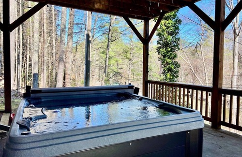 Amenities include: gas fireplace, Smart TVs, WIFI, Granite kitchen counters, Keurig and Regular coffee maker, mixer, toaster, microwave, coffee grinder, blender, stainless appliances, pack n' play crib, hammock, 2 patio sets, gas grill, several plastic chairs, hooks for your hammocks or use ours, corn hole, river tubes, hot tub, gated deck, ping pong table, fire pit, porch swing by river