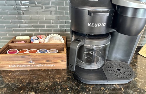 *Coffee and Keurig maker with Coffee, creamers, sugar, and tea.