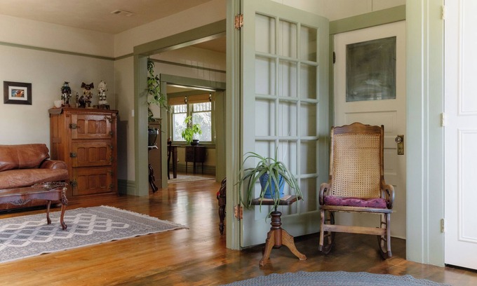 You'll immediately notice the natural hardwood flooring and framing, restored from its 1926 beginnings to offer modern accommodations while still embracing the vintage and classic aspects of the home. Each room is adorned with nostalgic furniture pieces carefully curated from a past generation, creating a charming and relaxing atmosphere. Modern amenities like the 65” Smart TV with complimentary Amazon Prime add a touch of convenience to your stay.