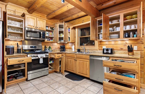 Relax in the hot tub while soaking in the mountain vistas, gather around the fire pit for s’mores under the stars, or challenge your crew in the game room. When adventure calls, you’re just minutes from scenic hiking trails, winding drives, and local attractions.
