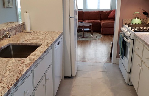 Master bedroom has a queen size bed and guest bedroom has two twin beds, studio with pullout full sofa bed, living room with dining area and family room with TV, couch could be pulled out to full size bed. easily accommodates 6 people with two bathrooms.