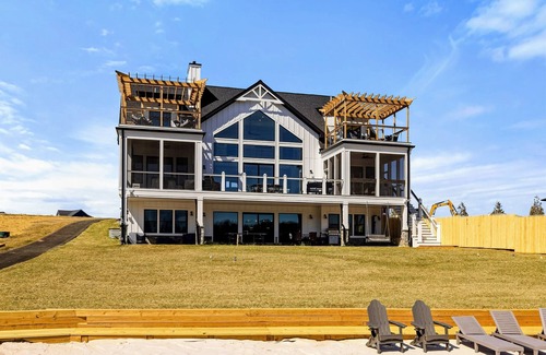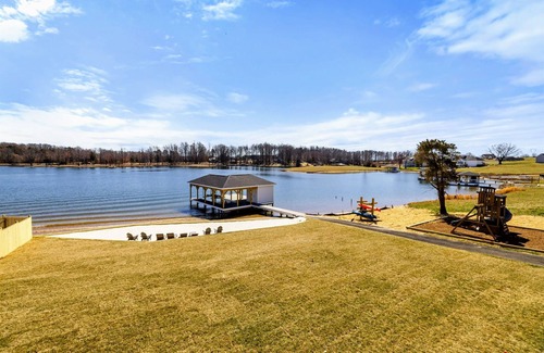 Experience comfort and luxury at our brand new modern and spacious lakefront home on the Private Side of Lake Anna. Enjoy the panoramic blue water lake views from the large boat dock, atop of our deck, or from the comfort of inside the home through many of the large windows. You will love the entire property including ~300 hundred feet of waterfront shoreline with a gently sloped naturally sandy bottom, warm freshwater, and a private beach. We provide lots of water toys including kayaks. Have a BBQ using our outdoor gas grill. Inside, this expansive home has plenty of space for everyone with 8 bedrooms and 7 bathrooms, an open floor plan and multiple living areas. Relax in the spacious main great room with water views through the huge bright windows, large French doors, a gas fireplace, and 4K Smart TV. Hang out in the huge lower level game room and have fun playing family appropriate games, ping-pong, pool (Memorial Day thru Labor Day), shuffleboard, or foosball. Watch a movie in our cozy movie theater. This is one of the few homes at Lake Anna with High Speed Internet, so you could work remotely if necessary. Alternatively, you could use the High Speed Internet and Free Wi-Fi network throughout the home to enjoy your time off and stream your favorite shows while you FaceTime everyone!
