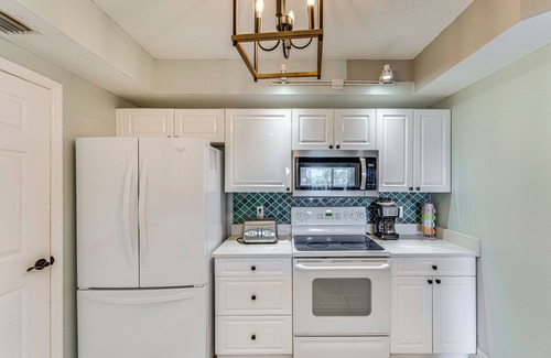 Your Atlantic Coast paradise awaits at this New Smyrna Beach vacation rental in Oceanwalk Condominiums! With on-site pool access, 2 recreation centers, and a prime location just steps from the shore, this 2-bed, 2-bath condo is perfect for keeping the entire family entertained. Spot manatees and wild birds on a kayak ride, check out the local eats and live music on Flagler Avenue, or make dinner in the fully equipped kitchen and take in views of the tropical greenery as you dine on the balcony.