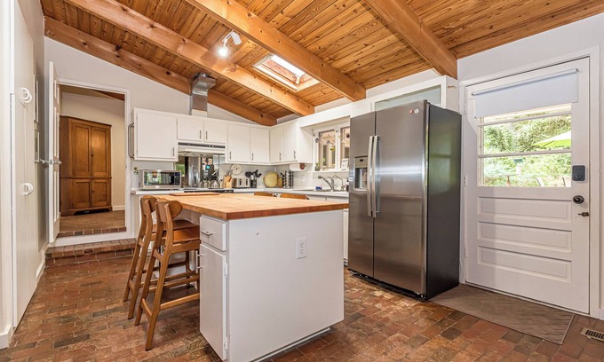 Beautiful indoor and outdoor spaces, including a sunroom for plant lovers and several quiet nooks for relaxation or work.
