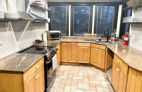In case you have forgotten anything, check the bathroom drawers stocked with items to help make your stay comfortable (shampoo, conditioner, body wash, qtips, makeup remover wipes, Tylenol, first aid kit, contactless thermometer, etc)