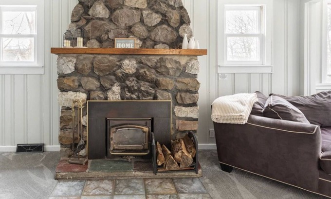 Our 5 bedroom / 2 bathroom home has it all! TWO wood burning fireplaces, Jacuzzi bath tub, granite counter tops, dining room and living room surrounded by windows. Upper and lower level living areas which include sectional sofa, wall mounted large screen Amazon Fire TVs. Sleeping accommodations for up to 11 people: 1 king bedroom with work desk, 1 bedroom with queen bed and work desk, 1 bedroom with queen bed, 1 bedroom with twin over full bunk bed, 1 bedroom with two full beds plus a queen air mattress. An outdoor deck with seating, fire pit and a gas/charcoal/smoker BBQ grill.