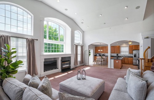 Stay at our newly styled 6 bedroom / 4BTH home in Hoffman Estates where your entire group can retreat, whether it be a family reunion or a professional gathering! This suburb home offers large living room spaces, a fully stocked kitchen, formal dining room, and 8 beds! Our central location is located only 20 minutes from Rosemont, O'Hare Airport, Woodfield Mall. Its also right near The Arboretum and NOW Arena. Book your stay at this beautiful home for privacy and spacious living.