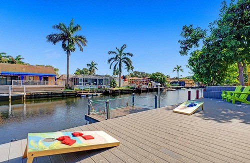 Forget your worries in this spacious and beautiful home. This 4BED/3BATH house can sleep 8 people comfortably and includes a rich list of modern amenities and resort-like comforts. It is centrally located just 10 min away from the beach and Ft Lauderdale Airport, and 25 min away from Miami. The house is close to the highway and very easy to access. It sits on a canal with direct ocean access and the patio features a fire pit, plenty of seating, an outdoor projector, and a BBQ grill.