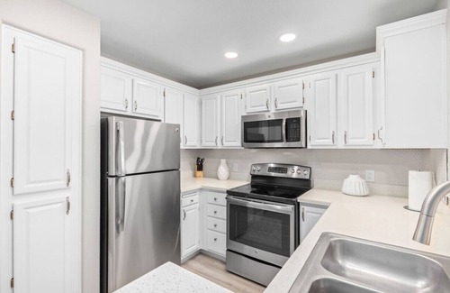 Spectacular fully remodeled upscale condo !!! Come enjoy our professionally decorated condo and explore all that Scottsdale has to offer ! This centrally located condo near year round entertainment along with easy access to freeway , mayo clinic and honor health hospital. Upon entering this 2 bedroom, 2 bath condo the living room provides you with stunningly gorgeous marbled fireplace, new queen sofa in living room. Primary has king size bed and second bedroom queen size bed. Beautiful Community