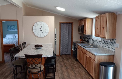 Our charming home features 2 bedrooms, additional sofa sleeper, 2 full bathrooms, and ample living space for your group to relax and unwind. Cozy up by the fireplace with a good book or gather around the outdoor fire pit under a blanket of stars with beautiful sunsets. With a fully equipped kitchen, dining area, and modern amenities, you'll feel right at home amidst the splendor of the mountains.