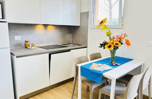 Offering a private beach area, New Splendid features accommodations in Bibione. This property offers access to a balcony and free private parking. Bibione Pineda Beach is a 6-minute walk from the apartment and Parco Zoo Punta Verde is 6.7 miles away. Featuring a terrace and garden views, the apartment includes 2 bedrooms, a living room, flat-screen TV, an equipped kitchenette, and 1 bathroom with a bidet and a shower. The accommodation is non-smoking. Caorle Archaeological Sea Museum is 27 miles from the apartment, while Aquafollie Waterpark is 27 miles from the property. Trieste Airport is 44 miles away.