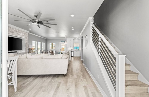 Inside, the home is equally welcoming. A coastal-inspired design flows throughout, combining comfort and casual elegance. Thoughtful décor, soft lighting, and cozy furnishings create a space that feels like home—only better. It’s a place where you can kick off your shoes and instantly feel at ease.