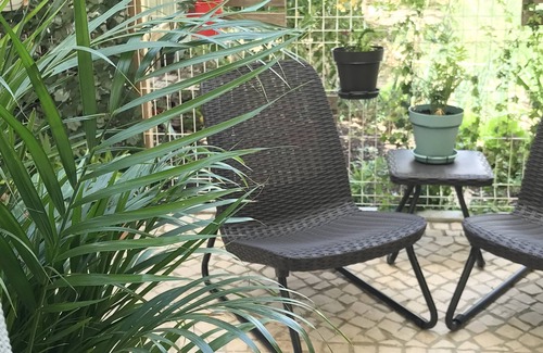 The studio also has a private patio, furnished with armchairs and table, decorated with flowers and plants. If additional baby equipment or other is needed, just order.