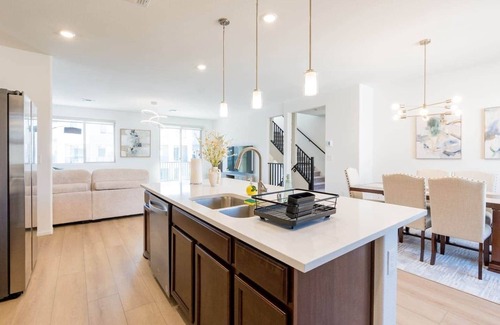 Welcome to the stylish, bliss & spacious home to accommodate your group. Look no further! Our brand-new, modern 3-story home offers the perfect blend of comfort, convenience, and luxury, making it an ideal choice for families or groups of up to 10 guests. Kick back and relax in this calm, stylish space. Smart TV with access to all major streaming apps to watch your favorite show. Wi-Fi is also provided onsite. 5 Rooms with 3.5 bath Basement: 1 Bedroom with 2 twin bed and full bath Loft with pool table First Floor: Living room, Kitchen, Dining, Laundry and half bath Second Floor: Master bedroom with King bed, full bath Bedroom 1: Queen bed Bedroom 2: Queen bed Bedroom 3: Queen bed 1 full bathroom Private two car garage. No Pets Allowed 4 miles from Las Vegas Strip Local stores and restaurants are 2-5 mins away. Casinos: The Orleans Hotel & Casino (3 miles) Palms Casino Resort (5 miles) Resorts World (7 miles) Caesar's Palace (7 miles) MGM Grand (6 miles) Wynn (7 miles) Bellagio (7 miles) Shopping: Las Vegas Premium Outlets South (7miles) North Premium Outlets (10 miles) Fashion Show Mall (7 miles) The Forum Shops (7 miles) Miracle Mile Shops (6 miles) The Grand Canal Shoppes (7 miles) Town Square (7.2 miles) Downtown Summerlin (9 miles) Attractions: Red Rock Canyon (13 miles) Shark Reef Aquarium (5 miles) The Big Apple Coaster & Arcade (6 miles) High Roller (7 miles) Convention Center (9 miles) Fremont Street Experience (11 miles) Local Food & Drink: One Piece Cafe (4 miles) Pink Cactus Tea (4 miles) Raku (5 miles) Lotus of Siam (7 miles) Wolfgang Puck's Spago (6 miles) Momofuku Las Vegas (6 miles) Airport: Harry Reid International Airport (9 miles) The whole house will be available. An elevated staircase was constructed to provide access to the main entrance. Contact through AirBnb Portal message Self check in with smart lock If you want early check-in or late check-out, please feel free to reach out 24 hours prior to your arrival date. Availability is dependent on prior or next guests. Unapproved late check-out is subject to $75 service charge. Any type of Smoking or vaping inside the property is strictly prohibited. WEED SMOKING IS STRICTLY PROHIBITED ON THE PREMISES INDOOR AND OUTDOOR including patio and backyard. The smell is disturbing and please do not book if you are weed smokers. Any residual substance from smoking or vaping inside the house will be subject to a fine or $450 to cover the additional cleaning costs. The community has strict noise ordinances. Please observe the quiet hours to respect the neighbors, quiet hour rules from 10pm to 7am. We DO NOT allow parties or any unauthorized guests without prior permission of the hosts. If you ignore the local laws, house rules, or violate Airbnb policy, we will cancel the remainder of your stay and you will be asked to leave immediately without a refund. Any fines due to violation of local noise ordinances will be the responsibility of the guest. Missing or damaged items - Any evidence of willful or negligent loss or damage to the property, furnishings, decoration, landscaping, towels, linens or other items will be charged at direct replacement cost plus a fine of up to $200. Towels and linens - Guests are required to keep towels and linens in good condition. Towels and washcloths should not be used to remove makeup or for cleaning purposes. Any permanent stains on towels or linens will fall into the category of negligent damage. Each damaged towel will be charged $50, damage linens will be charged $100.Guests should NOT wash comforters or duvet comforters themselves as this can cause damage to those items and the washing machine. House Rules - Any evidence of a guest breaking posted house rules, including exceeding the occupancy listed by the guest on the reservation, parking restrictions, illegal substances or use of the property can result in a fine of up to $1000.00 and / or eviction from the property. SECURITY CAMERAS ON SITE: *There is a video camera on door bell, top of garage driveway and backyard. Camera always recording for security reasons. We do have access to the videos in case there are discrepancies with number of guests, pets, etc. This property is professionally cleaned and fully sanitized serviced for every guest who books with Us! The home will always be stocked with bath towels, body wash, shampoo, and conditioner. If you need anything additional during your stay, please feel free to reach out!