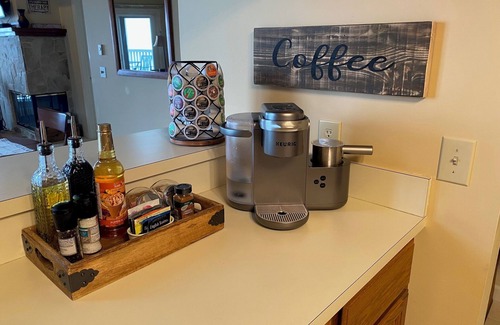Experience luxurious amenities that enhance your stay, including keyless entry for a seamless check-in and out process, and a private deck where you can enjoy stunning sunrises with your morning coffee. The fully stocked kitchen offers convenience with a BUNN coffee maker, a latte/cappuccino maker, and K-Cups to kickstart your day. The spacious master bedroom boasts a king bed and an attached full bath, while the second bedroom features a queen and single bed along with a private full bath. Additional touches like extra pillows, blankets, and a special makeup mirror ensure you feel pampered and prepared for your wedding festivities.