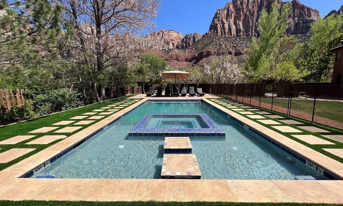Best-rates for the Zion National Park South Entrance villa starts from $1,299 per night with includes Child Friendly, Air Conditioner, Private Pool, Balcony/Terrace, Fireplace/Heating, Internet, Laundry, Bedding/Linens, Wellness Facilities, Entertainment, Hot Tub, Kitchen, Parking, Pool, TV, Sports/Activities, Barbecue/Outdoor Cooking with all other amenities. Perfect for Weddings is committed to ensuring every guest experiences a comfortable and extraordinary stay, whether planning a romantic getaway, a honeymoon, a pet-friendly stay, or celebrating with the entire wedding party.