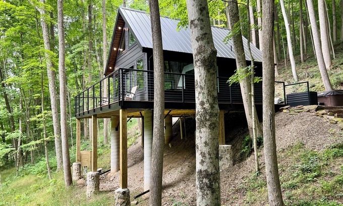 - LUXE ONE | RED WOLF FALLS*HOCKING HILLS*CLOSE TO EVERYTHING-TRAILS,HOT TUB,SAUNA,FIREPLACE,GAME ROOM