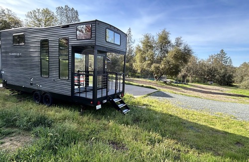Don’t miss your chance to enjoy this brand new tiny home near Hwy 20 in Penn Valley / Rough & Ready. Includes access to pool and hot tub on a shared 5 acre wooded lot (playfully named “Area 50” 👽). Gas fireplace, full fridge, gas stove/oven, W/D, microwave, wifi, TV + streaming, dishwasher, deck and new propane BBQ. Come enjoy vivid sunsets, deer, frogs, and wild turkeys while being 10 min from town. Tiny home includes queen bed (loft), queen sofa bed, & twin loft (suitable for up to 125 pounds). No pets. 18 minutes to Nevada City. Less than 30 minutes to Yuba River and several reservoirs. Less than 90 minutes to Tahoe and ski resorts. Please note the last 1/2 mile leading to the property is a dirt road. In-ground pool (open April-Oct).