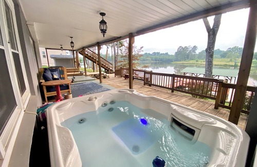 Relaxing Private 2 bed/2 bath 1,675sqft Lake House (sleeps 7 guests) overlooking 800 feet of waterfront views! Enjoy fishing, swimming, kayaking, relaxing in the hot tub, grilling burgers, or making s'mores by the fire pit.