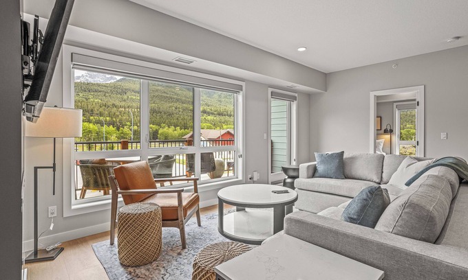Welcome to our brand new 3 bedroom, 2 bathroom condo that can accommodate 8 guests. Located in peaceful Dead Mans Flats, only 7 minutes to Canmore and 25 mins to Banff. The spacious third floor, 1200sq' unit has everything you would need for a relaxing stay. Our beautiful condo has a fully stocked kitchen, gas BBQ, TV in every room, private laundry, fireplace, patio, parks pass to borrow and underground parking.