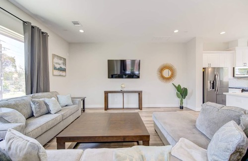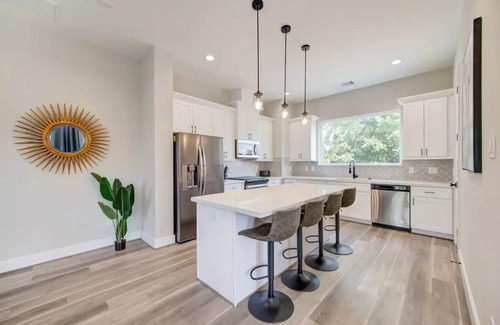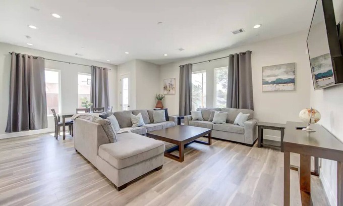 This beautiful, newly built townhome located in the heart of Houston is perfect for large groups who want to explore the city. You are walking distance from White Oak Music Hall, a 5 minute drive to the Heights, and 10 minutes from downtown. The Houston MetroRail is a 5 minute walk from the townhome and can take you to all of the city's hotspots. Come and see all of what Houston has to offer while staying in a spacious, comfortable place that feels like home!