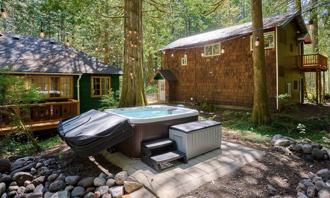 Welcome to your ultimate Rhododendron retreat—two cabins on one property where, "I need space" doesn't mean sleeping in the car! Send the early risers to one cabin and keep the night owls in the other. Just half a mile off Highway 26, you'll find yourself nestled against a forest, amongst the soothing soundtrack of the nearby creek. Soak in the hot tub amid the trees, or walk to the creek for a cold plunge. Minutes from Mt. Hood's slopes and scenic lakes, this is your group getaway perfection!