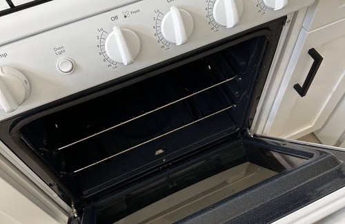 The kitchen has been fully remodeled and offers a full-size refrigerator & freezer. Also available is a gas stove & oven, microwave, toaster, crockpot, Keurig, & coffee, dishes, pots/pans, utensils, spices & more. We do not have a dishwasher but provide sponges & dish soap for guests.