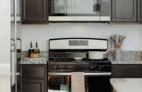 Our modern 3-bedroom, 2.5-bath home is the perfect fully furnished monthly rental. We pride ourselves on making this feel like home. As soon as you enter, you'll be greeted by a stunning living room featuring a plush and stylish couch and side chair. The vibrant living room has modern decor and a large 65 LG Smart TV, perfect for streaming all your favorite shows. We provide Netflix complimentary.