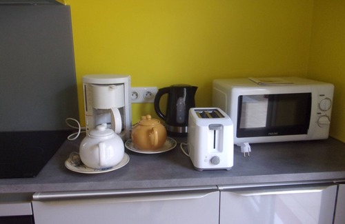 A living room, a dining area, air conditioning, and a desk are featured at this 2-bedroom, 1.5-bathroom rental. Bathroom amenities include a hair dryer and toilet paper. Prepare a home-cooked meal in the kitchen, complete with an oven, a stovetop, and a refrigerator, as well as a coffee maker, an electric kettle, and a microwave. And you won't have to pack extra clothes, because you'll also have access to laundry facilities.