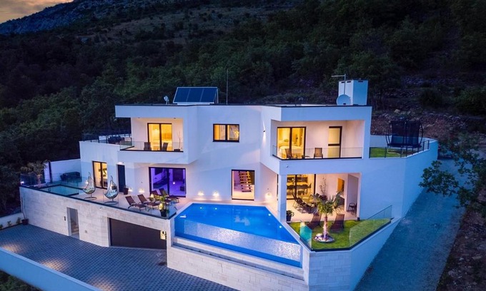 NEW! Villa Top Hill, heated infinity pool, Jacuzzi, Sauna, 5 en-suite bedrooms, a Media room is located in Tugare.