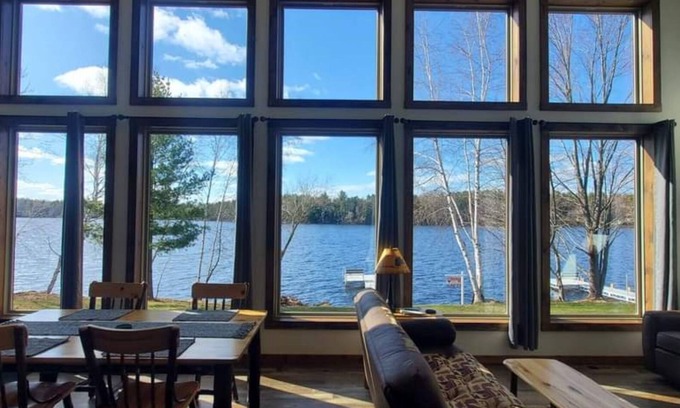 New waterfront cabin with expansive lake-facing windows, Long Lake, Phillips is located in Phillips. New waterfront cabin with expansive lake-facing windows, Long Lake, Phillips provides accommodation, featuring Laundry, Parking, Balcony/Terrace, among other amenities. This Cabin features Laundry, Parking, Balcony/Terrace, to make your stay a comfortable one.