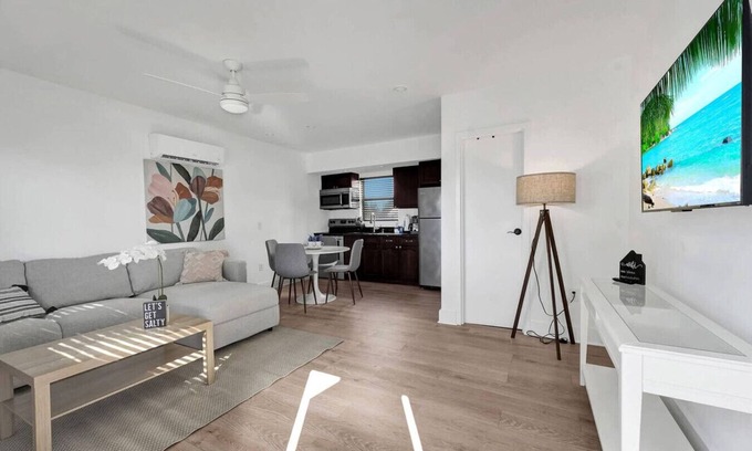 Keep it simple at this peaceful 1 bedroom with 1, 1/2 bathroom, right by Dania Peer . Only one step from the beach, the place will make you feel like home in a very quiet neighborhood.