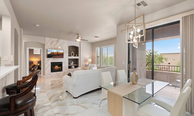 Best-rates for the McDowell Mountain Ranch condo starts from $170 per night with includes Air Conditioner, Balcony/Terrace, Laundry, Internet, Parking, Child Friendly, Kitchen, Pool, Security/Safety, Hot Tub, TV, Sports/Activities, Bedding/Linens, Wellness Facilities, Fireplace/Heating, Barbecue/Outdoor Cooking with all other amenities. Perfect for Weddings is committed to ensuring every guest experiences a comfortable and extraordinary stay, whether planning a romantic getaway, a honeymoon, a pet-friendly stay, or celebrating with the entire wedding party.