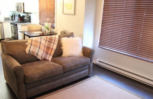 Modern, high end style (New Yorker) 1 bedroom, 1 bathroom condo right in downtown Whitefish. Bedroom has a king bed. Sleeper Sofa (full size air mattress on top of a regular mattress for added comfort) in living room allows condo to sleep 4. Granite countertops, heated tile flooring in bathroom, smart TV's (Netflix included) in the bedroom & living room. Free Wifi.