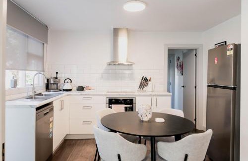 Newdegate St North Hobart offers a two-bedroom apartment in Hobart. The ground-floor unit features a living room, kitchen, and dining area. Guests enjoy garden views and an inner courtyard.Modern Amenities