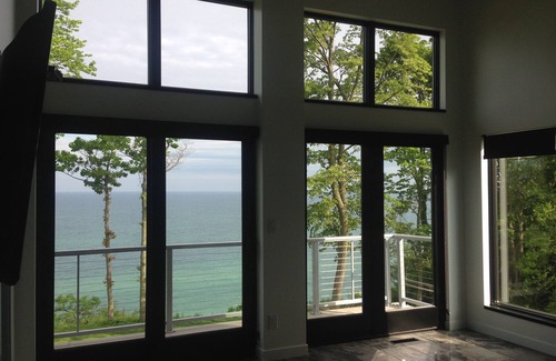This stunning 3 level contemporary single family home was completed the end of 2015. Everything is new! House is located on a bluff with gorgeous views of Lake Michigan from virtually every room in the house. Property includes 200ft of private beach (NOTE: there are 225 stairs down to beach). 7 bedrooms (1 bunk room), 5 1/2 baths, 2 separate entertainment areas. Perfect for 2 or 3 families. Kitchen and main living area are on the 2nd floor with a HUGE wrap around deck with spectacular views. There are two 3rd floor Master suites with huge bathrooms and their own 3rd floor deck. Sunset viewing and fires on the beach a must!