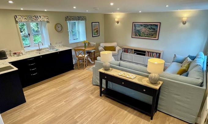 Newly converted 1 bedroom apartment with double, twin or triple bedroom and en-suite shower-room upstairs. Spacious open plan kitchen / living / dining room downstairs.