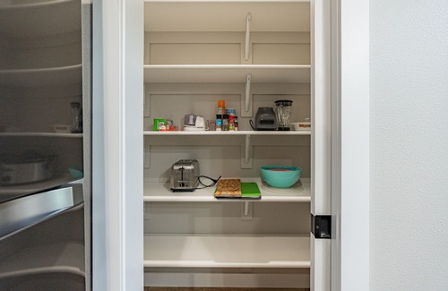 On the main floor you’ll be welcomed by the open concept design leading you to 20 foot ceilings in the living room, which is directly off the kitchen. The kitchen is fully equipped with all the necessities to cook, a walk-in pantry, and a single cup Keurig along with coffee. In the living room you can relax with views of the backyard/patio or enjoy watching TV.