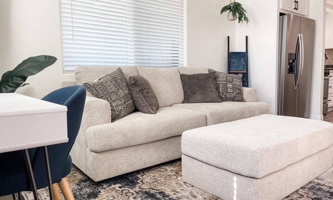 This newly build guest house is fully equipped to make you feel right at home. The kitchen has an oven stovetop and it includes all cook wear to help prepare your favorite dishes. The washer and dryer is conveniently tucked away by the kitchen and a iron and ironing board is also included. The bathroom shower has a unique design with a large shower head that gives the feeling of rain when you bathe. Both rooms have a soft queen bed with extra blankets and pillows. The living room has a small work space and a comfy couch that turns into a full bed. Each room has an individual air conditioning unit that allows everyone to set their desired temperature. The guest house is detached from the main house and has a private entrance though the side. Conveniently located to the 118 and 23 freeway and just a few minutes from LA county. Plenty of great places to eat/ shop and just a few minutes from the Ronald Reagan Library.