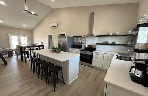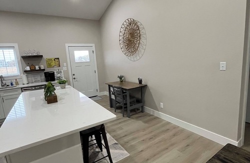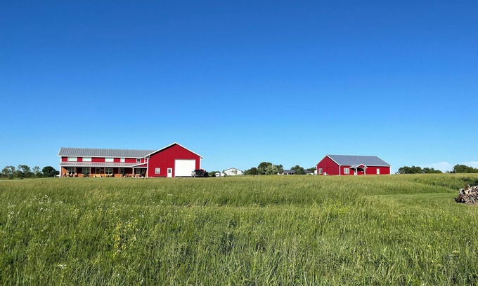 Located 5 miles outside of town in the beautiful flint hills of Kansas. Peaceful yet close to the fun vibes that can be found in Emporia, founding city of Veteran’s Day and home of the world renown Unbound Gravel Bike Race and disc golf capital. Our guesthouse is the perfect place to be whether you enjoy hiking, biking, fishing or reading a book on the bench overlooking the pond. The Red Barn Guesthouse has a beautiful kitchen fully equipped with new appliances, an in-house laundry room along with 3 private bedrooms. The first two bedrooms are located on the main level. The third bedroom is located in a sleeping loft and is accessed by a library ladder. This space is the perfect spot for the young or the young at heart! Additional amenities include the following